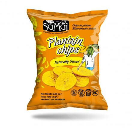 A SAMAI Plantain chips prémium minőségű főzőbanánból készül, melyet Dél-Amerika csendes-óceáni partján, Ecuadorban helyi farmerek termesztenek. A banánokat természetes módon érlelik, majd kézzel szedik le és válogatják ki a legszebb darabokat. Ezután, átszállítják a feldolgozó üzembe, amely közvetlenül az ültetvények mellett helyezkedik el, hogy az alapanyagok a le
