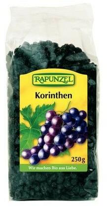 Ellenőrzött ökológiai gazdálkodásból származó kék szőlőből. Korintosz környékén termesztik ezt a keményhúsú, aromás kék szőlőt, melynek napon szárított gyümölcsét szívesen fogyasztják müzliben, sütéshez, főzéshez vagy egyszerűen nassolásra. Összetevők: Korintoszi kék szőlő mazsola* *Ellenőrizte: DE-öKO-006. Származási hely: görög-mezőgazdaság. Táp