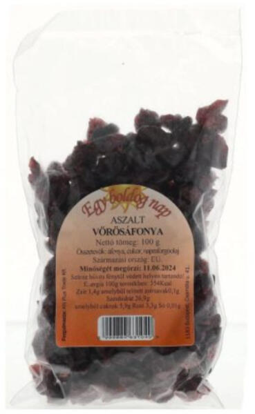 Egy boldog nap aszalt vörösáfonya 100g A vörös áfonya magas flavonoid tartalma miatt, erős antioxidáns hatású. A flavonoidok védik szervezetünket a káros oxidációs folyamatoktól, óvják testünket az öregedéstől. Vitaminok E, C, béta-karotin, Nyomelemek, ásványi anyagok nátrium, foszfor, kálium, kalcium, vas, magnézium, mangán, cink, kén. A vörös áfonya magas flavono