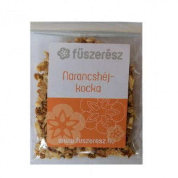 10 g-os narancshéj kocka; Fűszerész termék az egészséges élelmiszerek kedvelőinek. 10 g-os narancshéj kocka A narancs külső, vékony rétegben lehámozott sárga héja, amelyet sokféle célra használnak. Az édesiparban és a háztartásokban is gyakran alkalmazott, enyhén keser-nyés, kellemes narancs illatú, kedvelt fűszer, amelyet különféle süteményekbe, poharas krémekbe,
