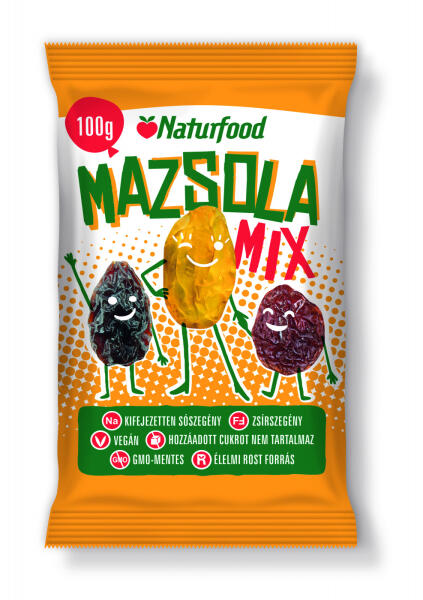 Háromféle mazsola ízletes keveréke. Fogyasztható közvetlenül csemegeként, felhasználható müzlik, joghurtok ízesítésére, sütemények készítéséhez. Összetevők: Thompson mazsola (mazsola, napraforgó olaj), fekete csemege mazsola (mazsola, napraforgó olaj), arany mazsola (mazsola, napraforgó olaj, antioxidáns (kén-dioxid))Jellemzők laktózmentes Igen tejmentes Igen tartós