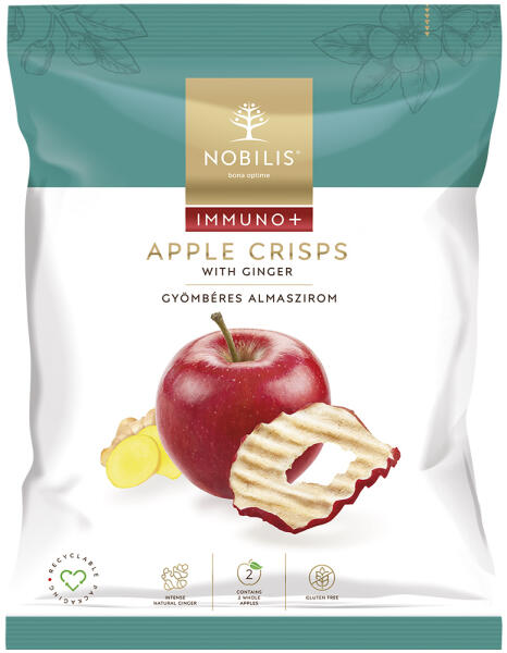 Szárított almaszirmok gyömbérrel. , Gondosan válogatott magyar jonatánalmából készült ropogós szirmok gyömbérrel. Könnyű, hozzáadott cukrok, olajok nélkül kíméletes szárítással készült termék. 1 tasak 2 egész almát tartalmaz szárított formában. A termékben található gyömbér hozzájárul a szervezet természetes védekezőképességének megőrzéséhez, valamint