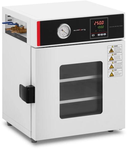 A nagy teljesítményű vákuum szárítószekrény ideális hő- és oxigénérzékeny anyagok hatékony és kíméletes szárítására, valamint különböző üvegedények fertőtlenítésére és sterilizálására. A 25 literes belső űrtartalommal és a két fiókkal gyorsan és páralecsapódás nélkül száríthatja a laboratóriumi berendezéseket és anyagokat. A készülék sokoldal