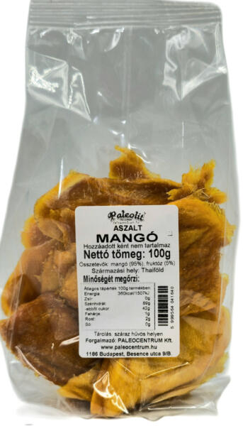 Cukor és kén hozzáadása nélkül készült, ízletes aszalvány. Átlagos tápérték 100g termékben: Energia: 354kcal/1444kJZsír: 0g-ebből telített zsírsav: 0gSzénhidrát: 82g-ebből cukrok: 68gFehérje: 2,5gRost: 5,2gSó: 0g Összetevők: man gó (100%) Származási hely: Ecuador A mangó Kelet-Indiából származik, de mindenhol elterjedt, ahol meleg, páradús az éghajlat. Lehet oly