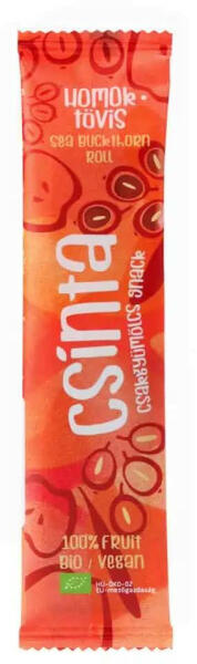 A Csinta Homoktövis - alma gyümölcsszelet egy kézzel készített, magas rosttartalmú, aszalt gyümölcsszelet, melyet kizárólag egészséges alapanyagokból készítenek. A termék C-vitaminban és rostban gazdag, így kiváló táplálékkiegészítő lehet mind felnőttek, mind gyermekek számára. A Csinta alma gyümölcsszelet vegán, gluténmentes, nem tartalmaz hozzáadott cukrot és