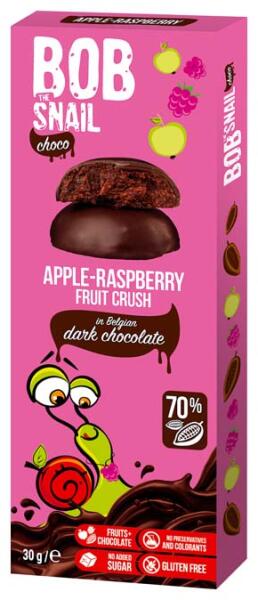 Alma-málna ízű, étcsokoládéba mártott csemege.