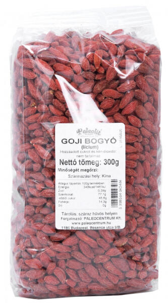 Cukor hozzáadása nélkül készült, ízletes aszalvány. Tények a goji bogyóról: 19 aminosavat (a fehérjék építőkövei) tartalmaz, melyek közül 8 esszenciális, azaz nélkülözhetetlen az élethez. 21 nyomelemet tartalmaz, köztük germániumot, amely ritkán fordul elő élelmiszerben és amely rákellenes hatású. Több fehérjét tartalmaz (13%), mint a teljes kiőrlésű gabona.