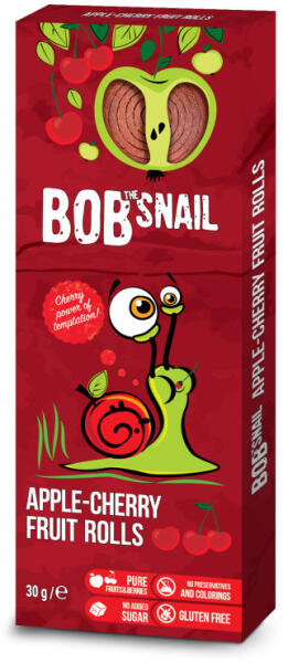 Bob Snail gyümölcstekercs alma-meggy 30 g Alma 80%, meggy 20%. Hozzáadott cukrot nem tartalmaz. Tartósítószer, színezék és adalékanyag mentes.