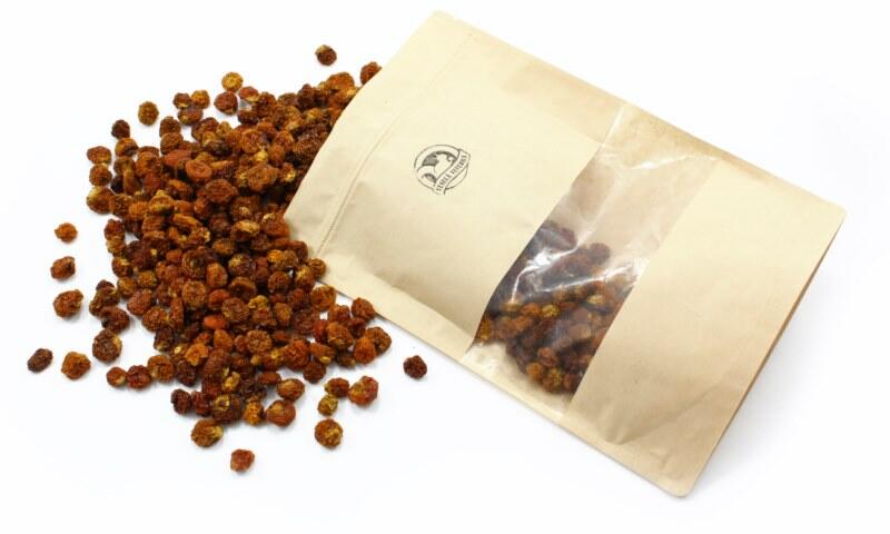 Részletes leírás: A perui cseresznye, más néven physalis, Dél-Amerikából származik, ahol értékelik édes-savanykás bogyói miatt. Ez a kis, narancssárga gyümölcs enyhén citrusos ízű, és gazdag vitaminokban, különösen C-vitaminban, antioxidánsokban és rostokban. Szárított formában a perui cseresznye megőrzi tápértékét, így kiváló snack gyors energiapótlásra. Egy