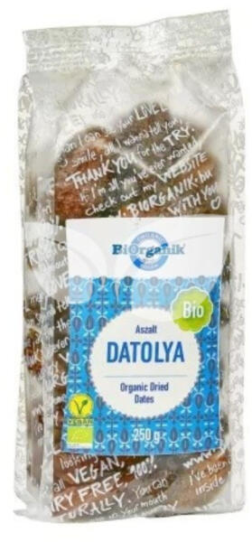 A datolya a datolyapálma termése, amely a Köze-Kelet jellegzetes növénye. Nemcsak finom, tápláló is. Egy természetes desszert. . BIORGANIK BIO ASZALT DATOLYA 250G A datolya a datolyapálma termése, amely a Köze-Kelet jellegzetes növénye. Már évezredekkel ezelőtt is ismerték, az élet fájának vagy áldott fának nevezték, hiszen nemcsak a termését fogyasztották, hanem más c