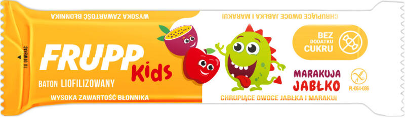 Frupp kids liofilizált szelet maracuja 10 g 100%-ban valódi, liofilizált (fagyasztva szárított) almából és maracujából készült snack gyerekeknek. Gluténmentes, hozzáadott cukrot nem tartalmaz csak a gyümölcsökben természetesen előforduló cukrokat. Magas, 30% rosttartalommal. 1 szelet csak 34 kcal! Valódi almával és kék passió gyümölcs darabokkal. Ideális snack tízórai
