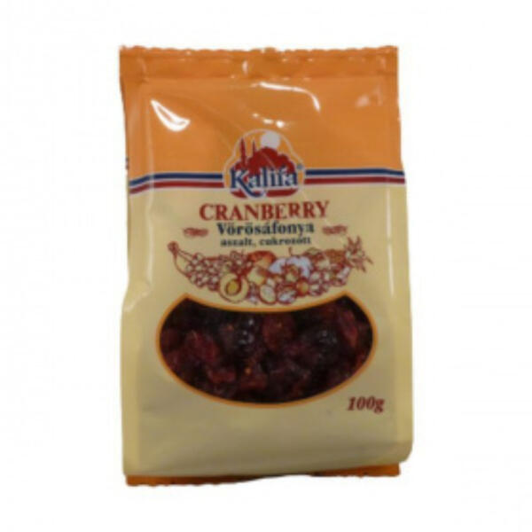 100 g-os aszalt áfonya; Kalifa termék az egészséges élelmiszerek kedvelőinek. A szárított gyümölcsök nemcsak különlegesen finomak, hanem a friss gyümölcsök után a legjobb rost-, vitamin- és ásványi anyag-források is. A vörösáfonya kiváló tápanyag, ásványi anyag és vitaminforrás. Vitaminok közül nagymértékben található benne C, B és A-vitamin. Ásványi anyagok