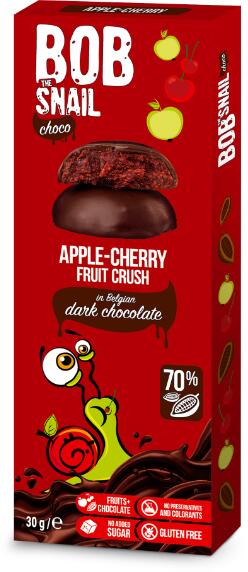 A Bob Snail újdonsága a csokoládéba mártott gyümölcs snack. A belseje 100% préselt gyümölcs, amelyet Belga étcsokoládéba mártottunk. A csokoládé sem tartalmaz cukrot, stevia kivonattal van édesítve. Egészséges finomság az egész családnak!