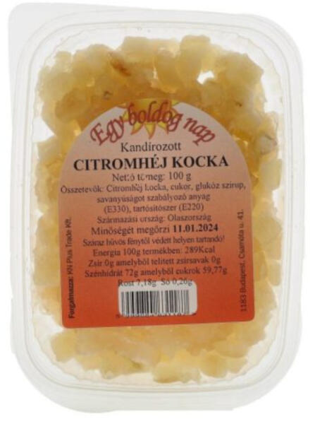 Egy boldog nap citromhéj kocka 100g Gyümölcslevesek, kompótok, turmix italok, rizsételek, puncsok, szószok, hidegtálak stb. ízesítésére, díszítésére. Összetevők: citromhéj kocka, cukor, glukóz szirup, savanyúságot szabályozó anyag (E330), tartósítószer (E220). Az aszalás az egyik legősibb természetes gyümölcstartósítási eljárás. A folyamat során a feldarabolt v