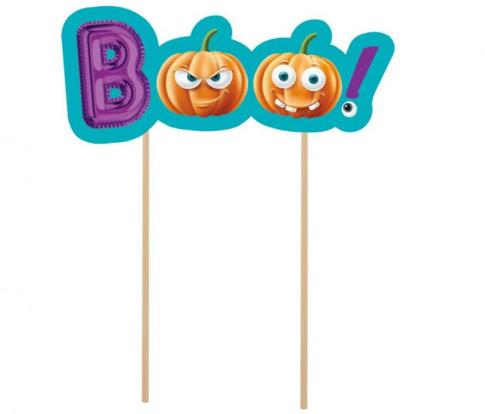 Halloween, Boo torta dekoráció 18 cm Anyaga: papír, fa(pálca) Méret: 18x15 cm