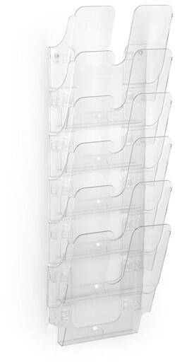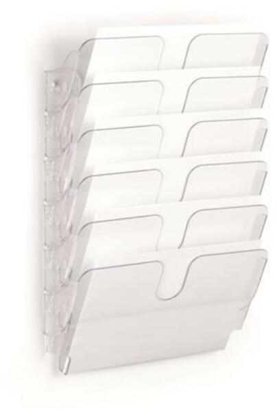 Prospektustartó, fali, fekvő, A4, DURABLE FLEXIPLUS 6, áttetsző (DB1700014401) Prospektustartó modern designban A4-es dokumentumok bemutatására. -beltéri használatra -ideális a bejáratnál, kiállító helyeken elhelyezett tájékoztatókhoz -műanyag -fekvő A4-es dokumentumokhoz -áttetsző színben -bővíthető 6 kg teherbírásig -6 rekeszes -külső méret: 340x750x100 mm (szé x
