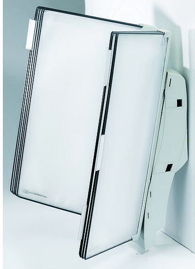 L alakú asztali tartó plasztik bevonattal rendelkező acélból, A4 méretű panelekhez. Méret: 170 x 295 x 165 mm (SZ x M x H) Panelek száma: 10 Panelek mérete: A4 Katalóguskód: 24925