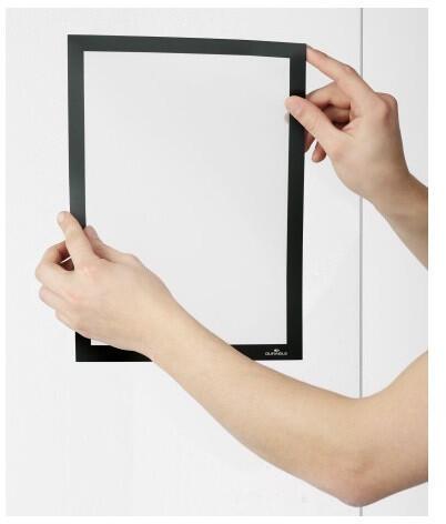 DURAFRAME® keret, öntapadó hátlappal és mágneses előlappal többféle méretben. A DURAFRAME® segítségével profin és kényelmesen helyezhetjük ki dokumentumainkat. Egyszerűen vegyük le a védőfóliát és ragasszuk fel az öntapadó keretet bármilyen sima, kemény felületre, például ablakra, iratszekrényre vagy ajtóra. A DURAFRAME® könnyedén áthelyezhető például üveg