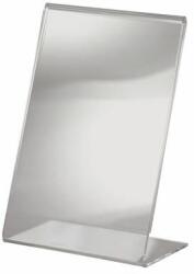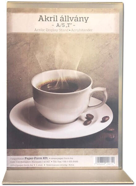 A5 "T" víztiszta 2 mm akril asztali laptartó 2 mm-es víztiszta akril műanyagból hajlított T talpas étlap, vagy szórólap tartó állvány A/5 méretben