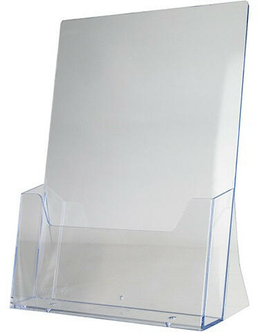 - szórólapok, információs anyagok egyszerű és látványos bemutatására - döntött forma a könnyebb láthatóság érdekében - egyoldalas bemutatásra alkalmas - kristálytiszta akril anyag - a lapok oldalról becsúsztathatók