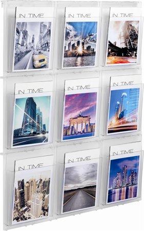 - fali prospektustartó 9 db A4-es rekesszel - alumínium sínnel (tartozék) - méretek: 852x978x59 mm - rekesz mélysége: 35 mm - törhetetlen alapanyag, elegáns, áttetsző fényes - könnyen falra szerelhető - függőlegesen bővíthető szélesség: 245 mm mélység: 35 mm magasság: 235 mm