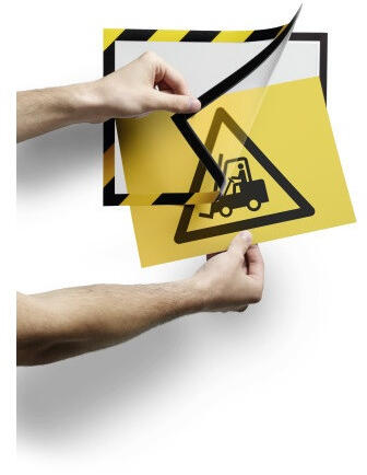 Infokeret öntapadó A4, mágneses záródás DURABLE DURAFRAME® SECURITY, 2db/csomag, sárga/fekete DURAFRAME® SECURITY, két szín kombinációval ellátott öntapadó keret mágneses záródással. A biztonsági figyelmeztetések és előírások gyorsan és egyszerűen cserélhetők, mindkét oldalról olvashatók, amennyiben kihelyezésük üveg felületen történik. A4-es méretben, mely