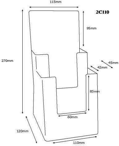 1/3 A4-es prospektusokhoz, 2 rekeszes. Belső méret: 110 x 42 mm.