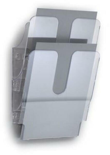 Prospektustartó, fali, álló, A4, DURABLE FLEXIPLUS 2, átlátszó (DB1709008400) Prospektustartó modern designban A4-es dokumentumok bemutatására. -beltéri használatra -ideális a bejáratnál, kiállító helyeken elhelyezett tájékoztatókhoz -műanyag -álló A4-es dokumentumokhoz -átlátszó színben -bővíthető 6 kg teherbírásig -2 rekeszes -külső méret: 247x360x100 mm (szé