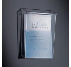 Alcsoport prospektustartó Méret A4 szórólapok, információs anyagok, menük egyszerű és látványos bemutatására UV és eső álló kialakítás rekesz mélysége: 60 mm méretek: 247 x 339 x 88 mm (Sz x M x M).
