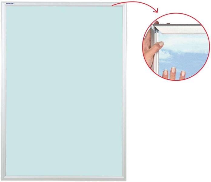 Elegáns 25 mm széles eloxált alumínium képkeret a dokumentumok és poszterek egyszerű és biztonságos cseréjéhez. A keret függőlegesen és vízszintesen is felszerelhető / szereléshez szükséges tartozékokat tartalmazza /. PVC lap UV-szűrővel védi a dokumentumokat. Időjárásálló, ideális kültéri használatra is. 45x62x1,2 Katalóguskód: 30734