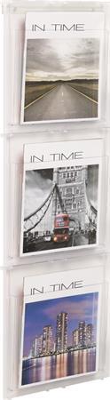Prospektustartó modern designban. A4 méretű információk bemutatására. 6 db A4 álló részből áll. Méret: 745 x 247 x 100 mm (M x SZ x H)