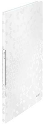 Bemutatómappa, 20 zsebes, A4, LEITZ "Wow", fehér - kiváló minőségű PP iratvédő mappa ragyogó WOW színekben - ideális dokumentumok prezentálásához, rendszerezéséhez - 20 áttetsző, a gerinchez rögzített tasak - gerinccímke a tartalom könnyű beazonosításához - illik a "Wow" gumis mappába, bármely standard iratpapucsba vagy irattálcába - 40 A4 lap kapacitás (2 lap / tas