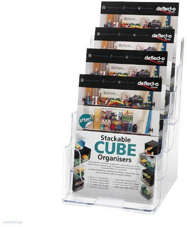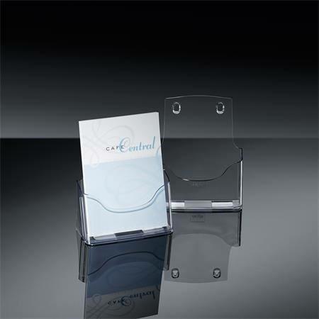 Áttetsző, műanyagből készült asztali prospektustartók A/5-ös anyagok számára. A lekerekített élek tiszta megjelenést sugallnak. .