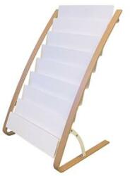 Skandináv stílus, letisztult dizájn fa és acél anyagok kombinációjával. Ideális kiegészítő magazinok vagy prospektusok kihelyezéséhez például a recepción. - erős szerkezetű, stabil fém állvány - FSC tanúsítvánnyal rendelkező faanyagból készült - súlyozott talppal - 8x2 db rekesz A4-es (24 x 32 cm-es) dokumentumok tárolására - magasság : 93 cm - szélesség : 58 cm
