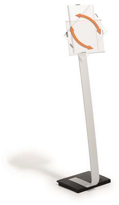 Alu padlóállvány A4, víztiszta akril előlappal. -felhasználási terület: recepciókon, vásárokon, előcsarnokokban és váróhelyiségekben információs állványként -egyszerű információcsere az akrillapok szétválasztása révén -formátum: álló/fekvő egyaránt -nehéz öntöttvas talpnak köszönhetően biztonságos és stabil -ergonomikus kialakítás: állítható magasság