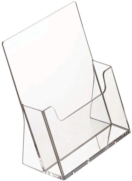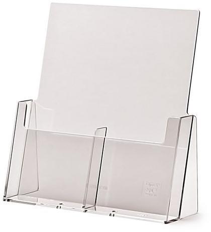 Plexi állvány szórólapokra, brosúrákra, reklámanyagokra stb. Két zseb egymás mellett, álló tájolással. Az állvány alapkivitelben nyomat nélkül kerül szállításra.
