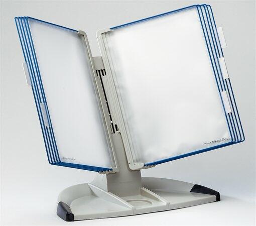 - a T-office asztali állvány 10 db bemutatótáblával felszerelve kapható - a bemutatótáblák műanyag bevonatú acélhuzal kerettel, tükröződésmentes, újrahasznosítható polipropilénből készülnek - a bemutatótáblák egy erős műanyag forgórésszel ellátva illeszkednek az asztali állványba - a bemutatótáblák könnyedén ki- és bepattinthatóak - az asztali állvány ide