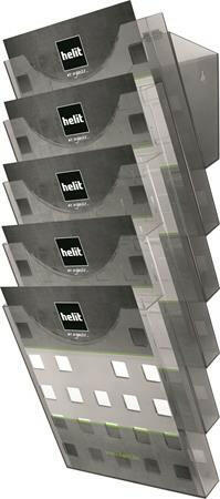 - különleges dizájn, prémium minőség - a szett tartalma: 5 db INH61025 rekesz + 1 db INH61030 fali kiegészítő - méret: 241x150x578 mm (A4 fali, asztali kivitel) - szín: áttetsző szürke - bővíthető (INH61025 és INH61026 elemekkel) - rekeszmélység: 31 mm Gyártó/első EU forgalmazó elérhetősége: helit innovative Bueroprodukte GmbH Muellenbacher Strasse 14, D-51709 Marienheid