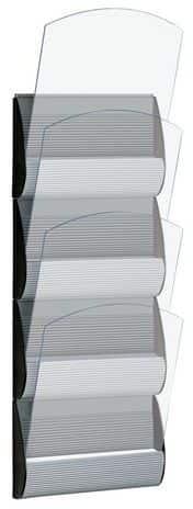 Az átlátszó rekeszekkel ellátott fali tartó jól láthatóan megjeleníti reklámprospektusait. Nagy kapacitás a 2,3 cm-es rekeszszélességnek köszönhetően. A készüléket egyszerűen a falra rögzítheti egy praktikus rápattintható rendszernek köszönhetően.