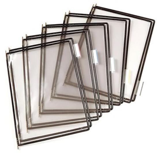 A4 méretű panelekből és fém fali tartóból álló teljes szett, mely azonnal használható -áttetsző PVC panelek, melyek fénymásolhatók és szkennelhetők -5/5 indexfülekkel -könnyedén használható falra szerelhető tartó, mely a kívánt kapacitásig bővíthető -karcmentes bevonattal ellátott tartó -10 db A4 panellel (5 db piros és 5 db kék)