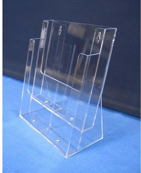 Szórólaptartó, 2xA4, asztali és fali. Belső méret: 229 x 235 x 32 mm. No. 4635 osztóval a rekeszek felezhetők.