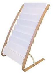 Skandináv stílus, letisztult dizájn fa és acél anyagok kombinációjával. Ideális kiegészítő magazinok vagy prospektusok kihelyezéséhez például a recepción. - erős szerkezetű, stabil fém állvány - súlyozott talppal - 8x2 db rekesz A4-es (24 x 32 cm-es) dokumentumok tárolására - magasság : 93 cm - szélesség : 58 cm - mélység: 50 cm - rekeszek mélysége: 4 cm - az össz