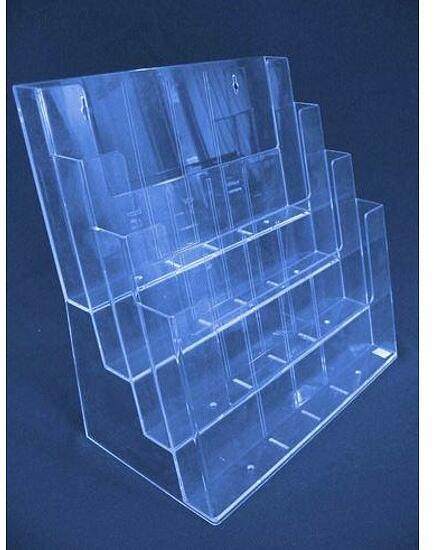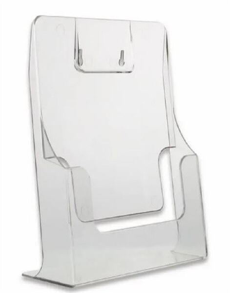Univerzális függőleges állvány kiállítások, vásárok, ajánlati lapok, menük és promóciós anyagok számára. Kiváló minőségű átlátszó akrilból készült, nagyon stabil és erős, kopásálló. A4-es formátum.
