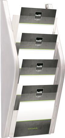 Prospektustartó modern designban. A4 méretű információk bemutatására. 6 db A4 álló részből áll. Méret: 745 x 247 x 100 mm (M x SZ x H)