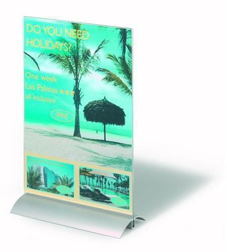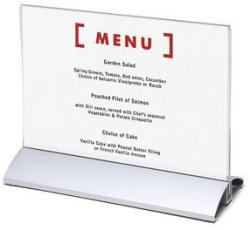 A prezentációs állványok egy panellel használhatók állványként étel- és itallapra vagy utazási irodák ajánlataira. Áttetsző akrilból készülnek stabilitást biztosító alumínium alapzattal.