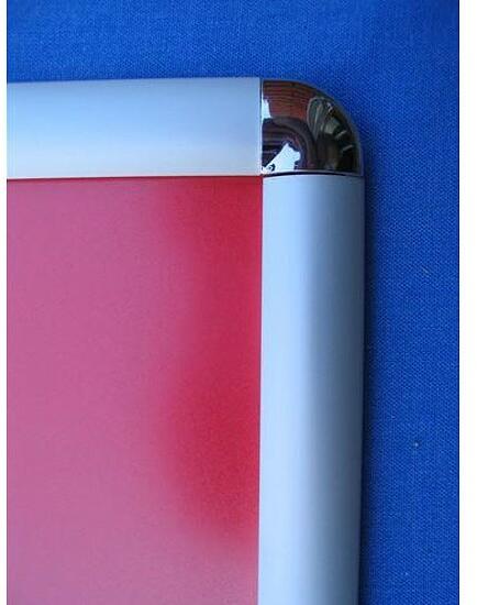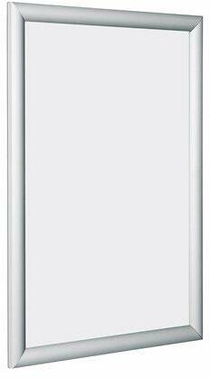 Plakátkeret, A1 méretű plakáthoz. Lekerekített sarkok, tükröződésmentes PVC védőfólia, felcsapható eloxált keret. Profilszélesség: 25 mm.