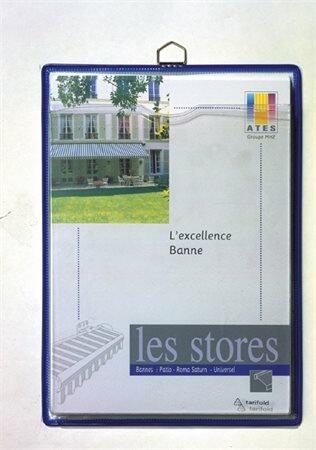 A4 méretű prospektustartó igénybevételt álló anyaga: tükröződésmentes PVC, műanyaggal bevont, acélhuzal kerettel az elején 2 cm vastag, merev zseb található a hátulján található zsebben, a táblában elhelyezett dokumentumok egy példányának tárolására van lehetőség fém füllelfüggeszthető a falra Kitűnően alkalmazható reklámanyagok, információs szórólapok, ka