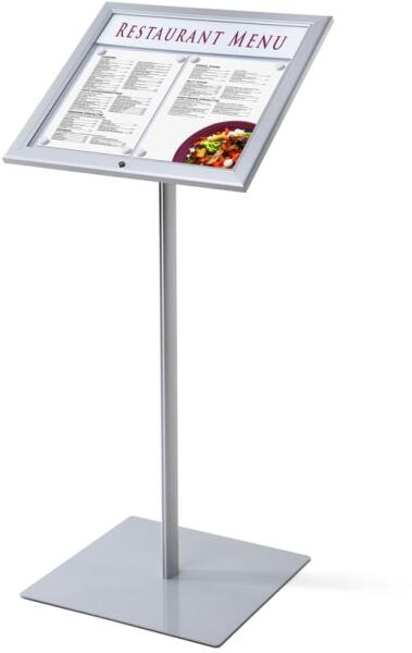 A LED vitrines menütábla kiváló megoldás információk bemutatására vagy fontos nyomtatott anyagok jól látható helyen történő megjelenítésére, nem csak az éttermek területén. Masszív alumínium konstrukciójával és elegáns dizájnjával a Menuboard beltéren és kültéren egyaránt használható. Nagyon ellenálló, nem csak a kedvezőtlen időjárásnak, hanem a mechanikai