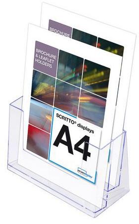 Műanyag szórólap, brosúra, reklámanyag stb. állványok. Két zseb egymás mögött, álló tájolással. Falra rögzíthető. Az állvány alapkivitelben nyomat nélkül kerül szállításra.