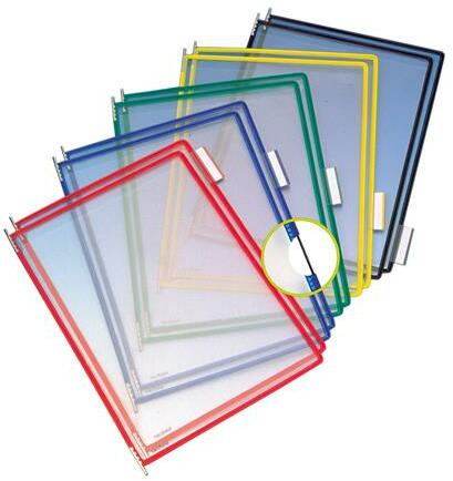 Igénybevételt álló, tükrözõdésmentes, műanyag bevonatú acélhuzal kerettel készül. Az összes bemutatott TARIFOLD termékhez használható. Tárolja, védi és egyben prezentálja is a benne tárolt dokumentumokat. - 10 db/doboz - műanyag bevonatú acél keret - fém forgócsapok